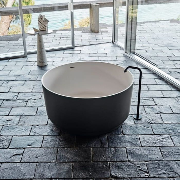 Ванна отдельностоящая Agape In-Out 130×130 искусственный камень, белая/темно-серая глянцевая (AVAS1041ZG)