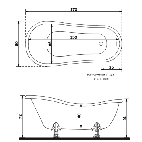 Ванна отдельностоящая Alice Boheme 170×80 акриловая, белая глянцевая (VABOPC)