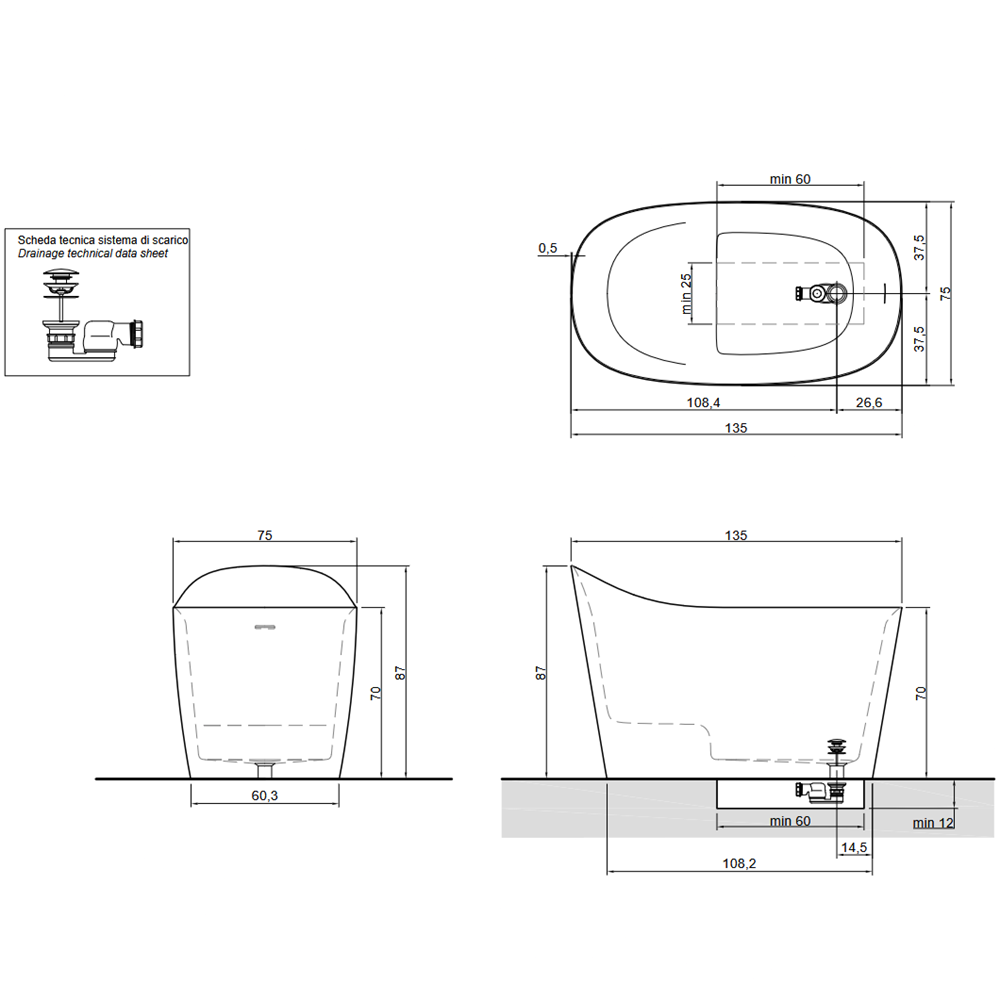Ванна отдельностоящая Antonio Lupi Mastello 135×75 искусственный камень, белая матовая (MASTELLO.6_rame)