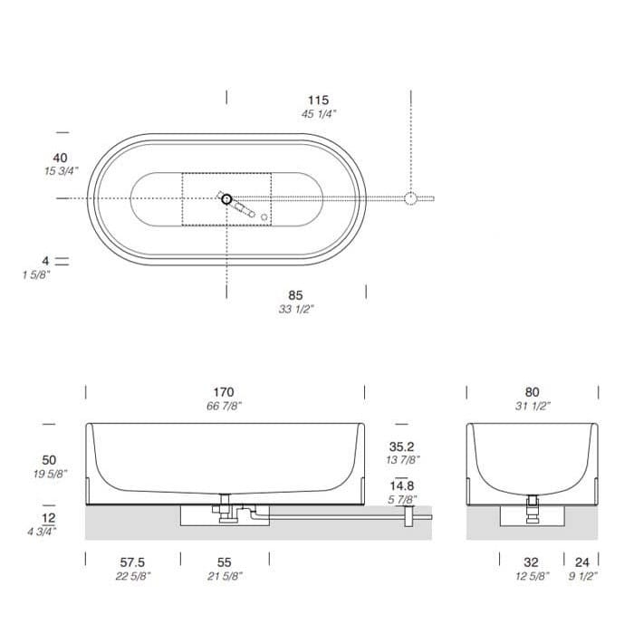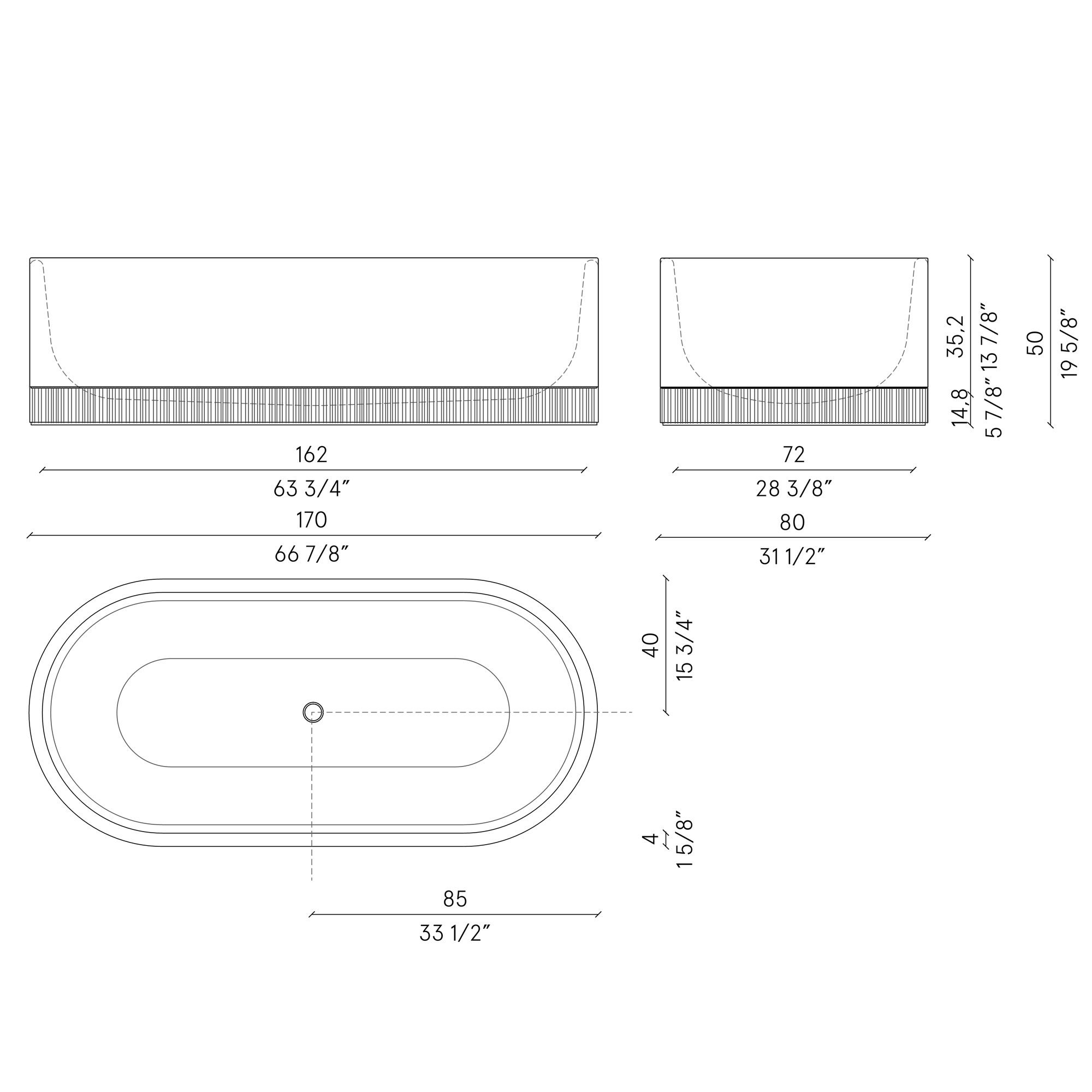 Ванна отдельностоящая Milldue Noorth Roma 170×80 искусственный камень, белая матовая (5079.A)