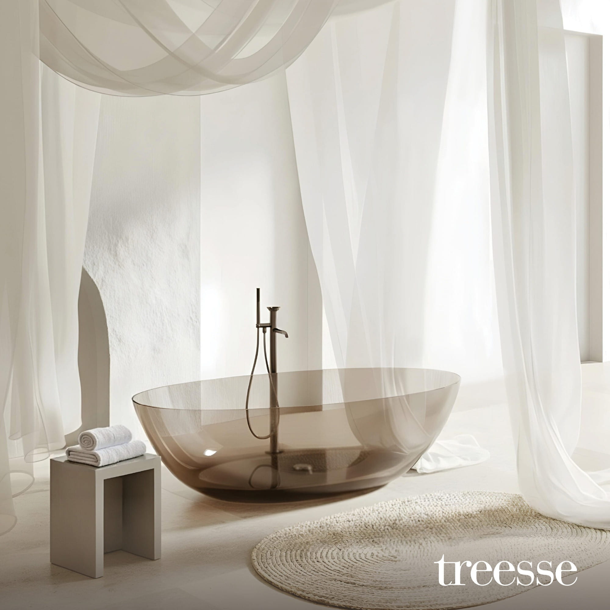 Ванна отдельностоящая Treesse Camelia 180×85 прозрачная смола, коричневая глянцевая (V047FU)