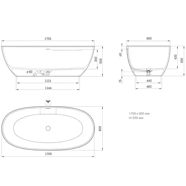 | Высота ванны, мм | 550 |
