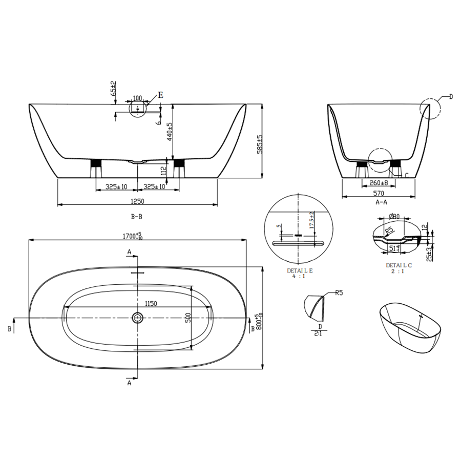 | Длина ванны, мм | 1700 |