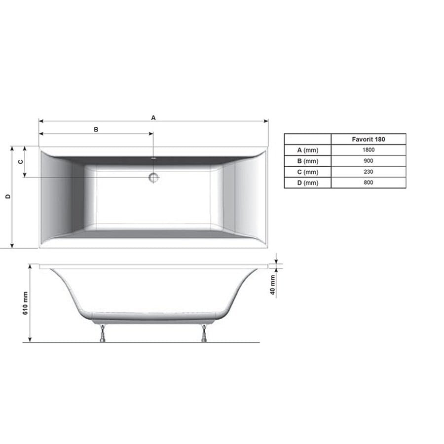 Ванна пристенная Ravak Favorit 180×80 акриловая, белая глянцевая (XC00100124)