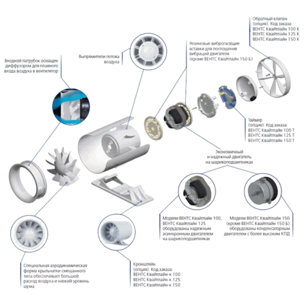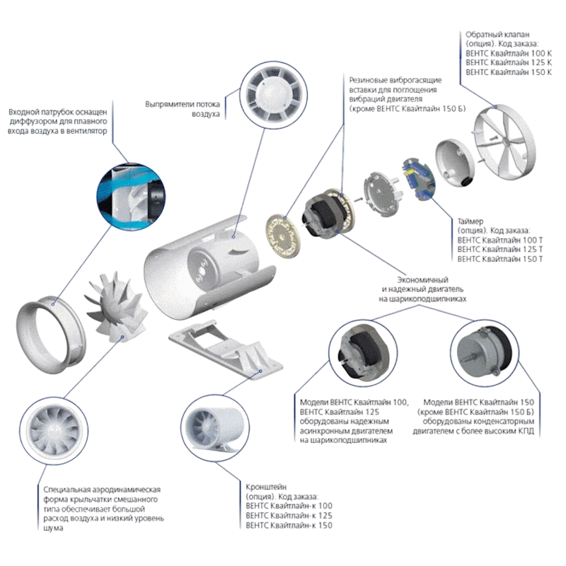 Особенности вентилятора | Двигатель на подшипниках, Двигатель пониженной мощности |