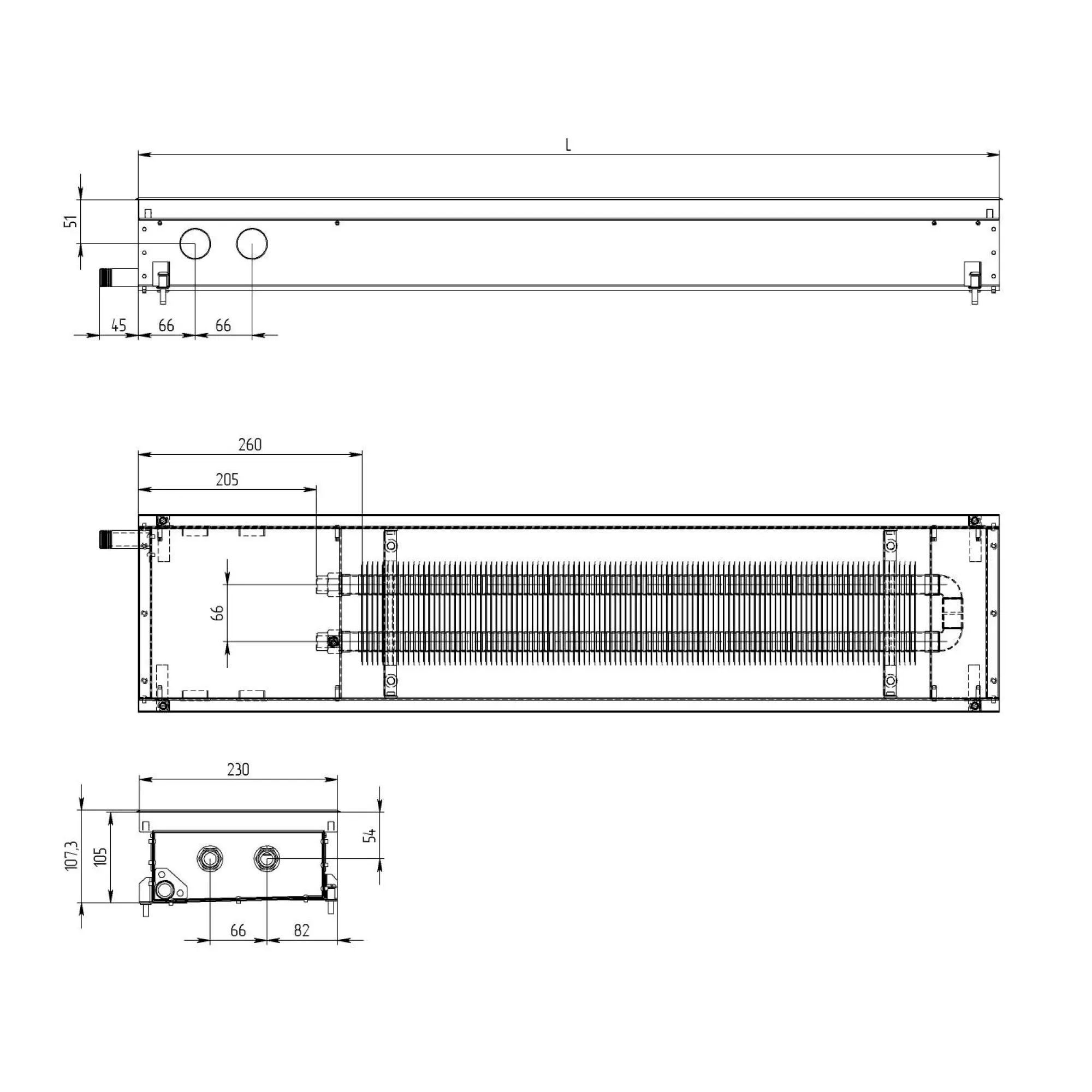 Внутрипольный конвектор Carrera S/C Hydro 2500x230x105 с естественной конвекцией