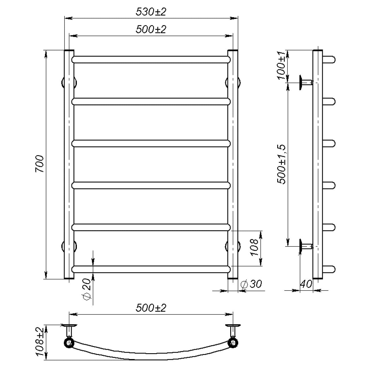 | Высота полотенцесушителя, мм | 700 |
