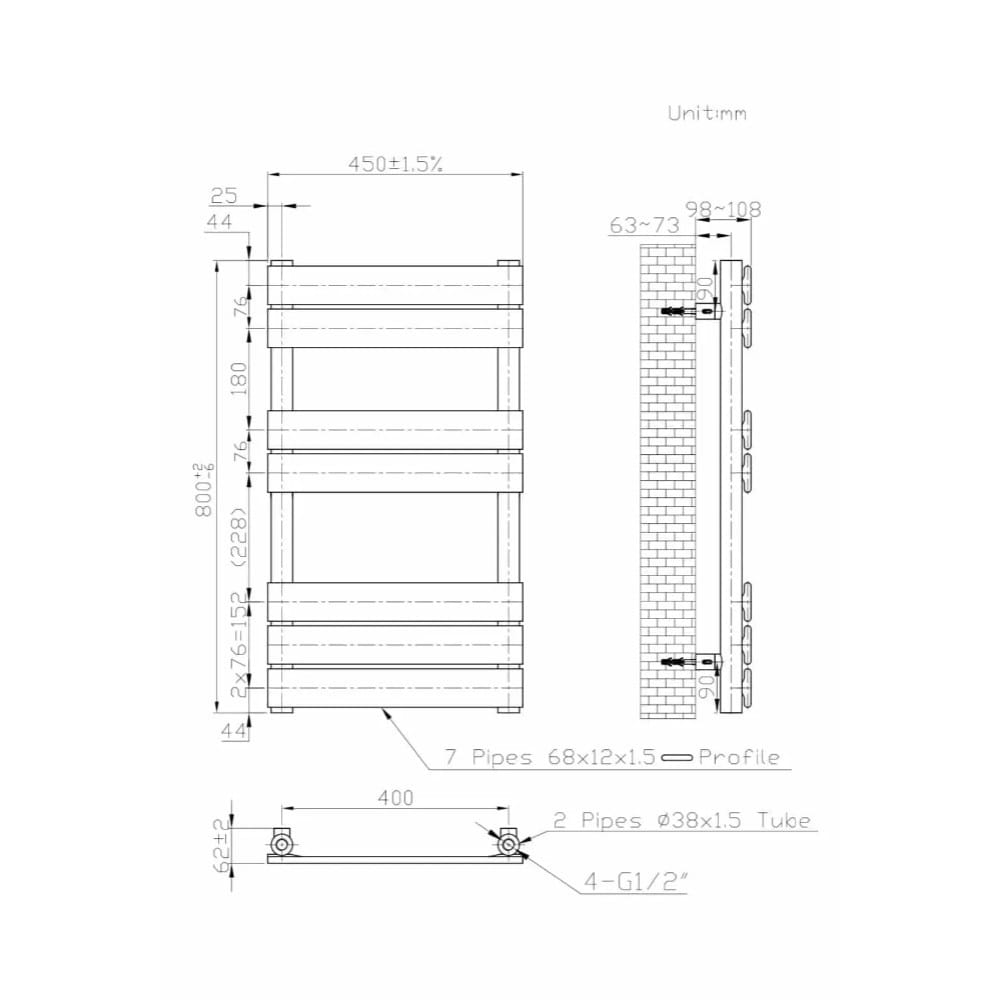 Водяной полотенцесушитель Rastas Faro 800×450 низкоуглеродистая сталь, черный матовый (RR-FR800450B)