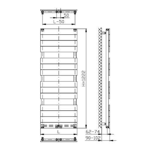 Водяной полотенцесушитель Trinnity Flat 1222х450 нержавеющая сталь, черный матовый