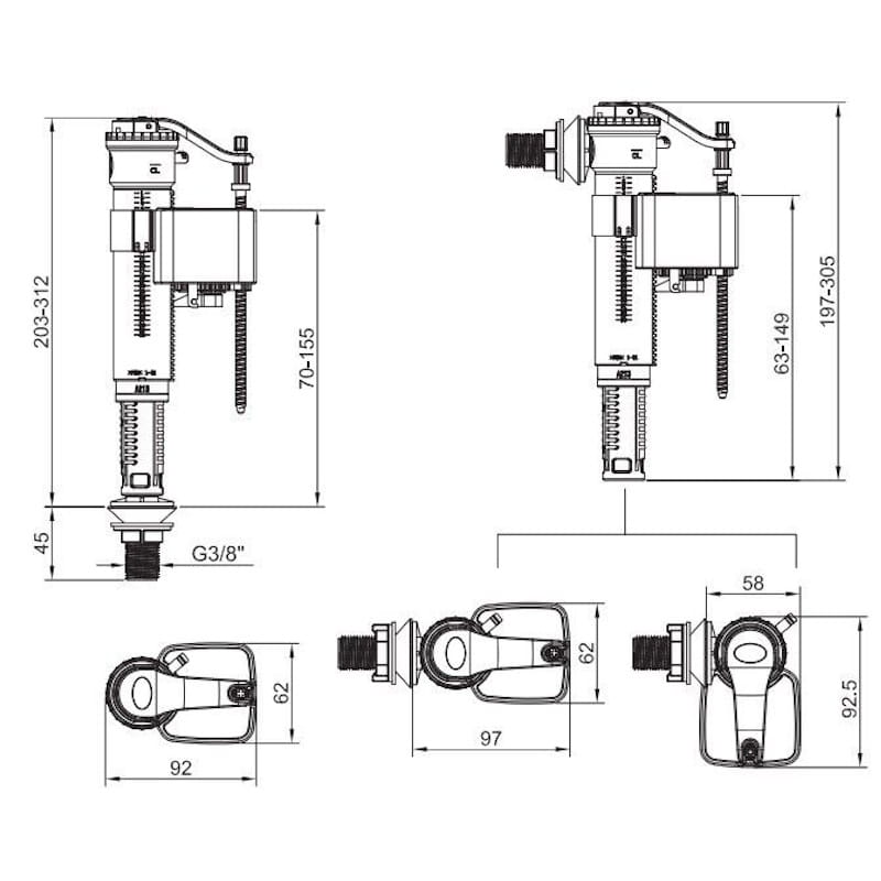 Впускной механизм для бачка унитаза GAPPO G1892.04 1/2″ с универсальным подключением