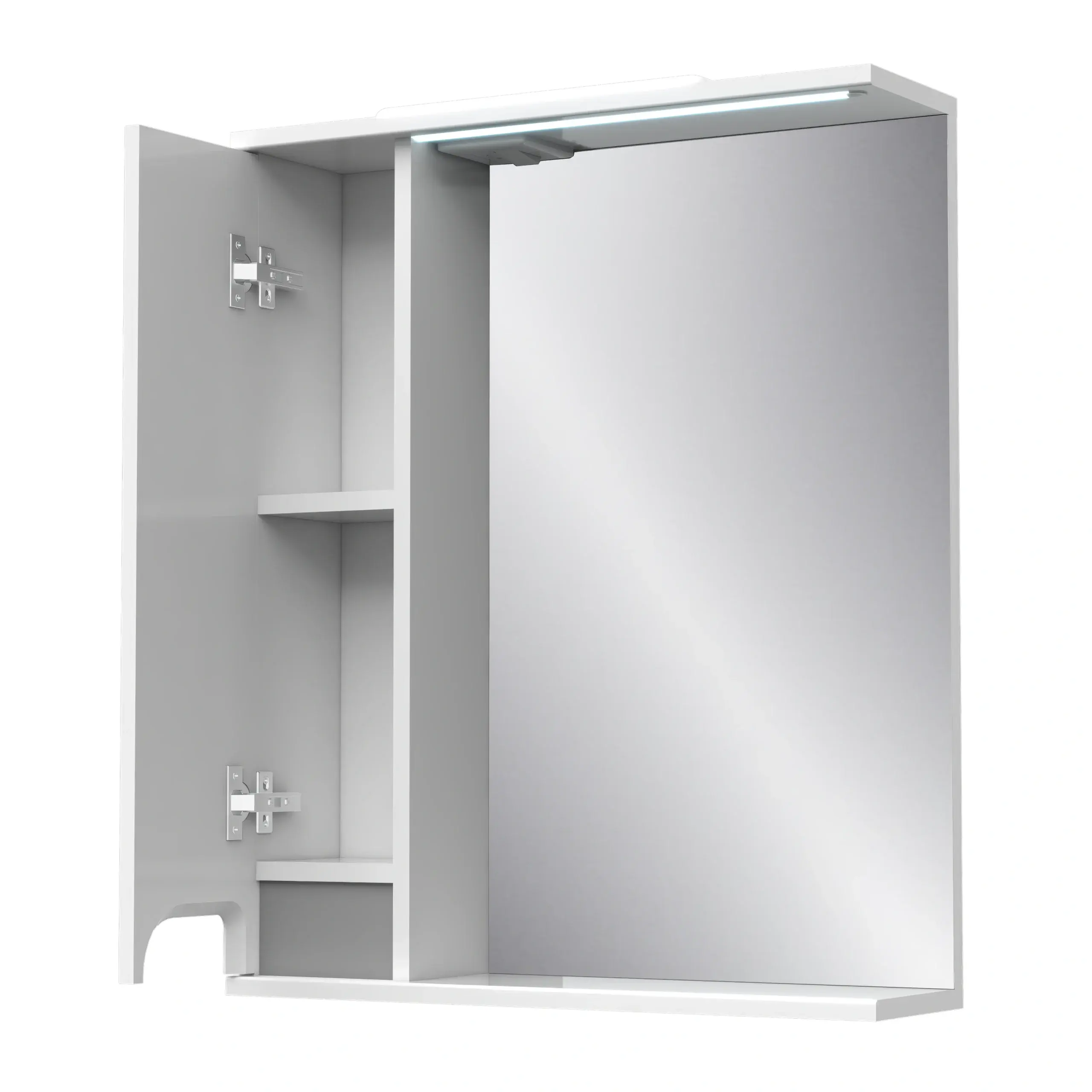 Зеркальный шкаф в ванную Van Mebles Корнелия 750×700 L с подсветкой, прямоугольный, серый металлик
