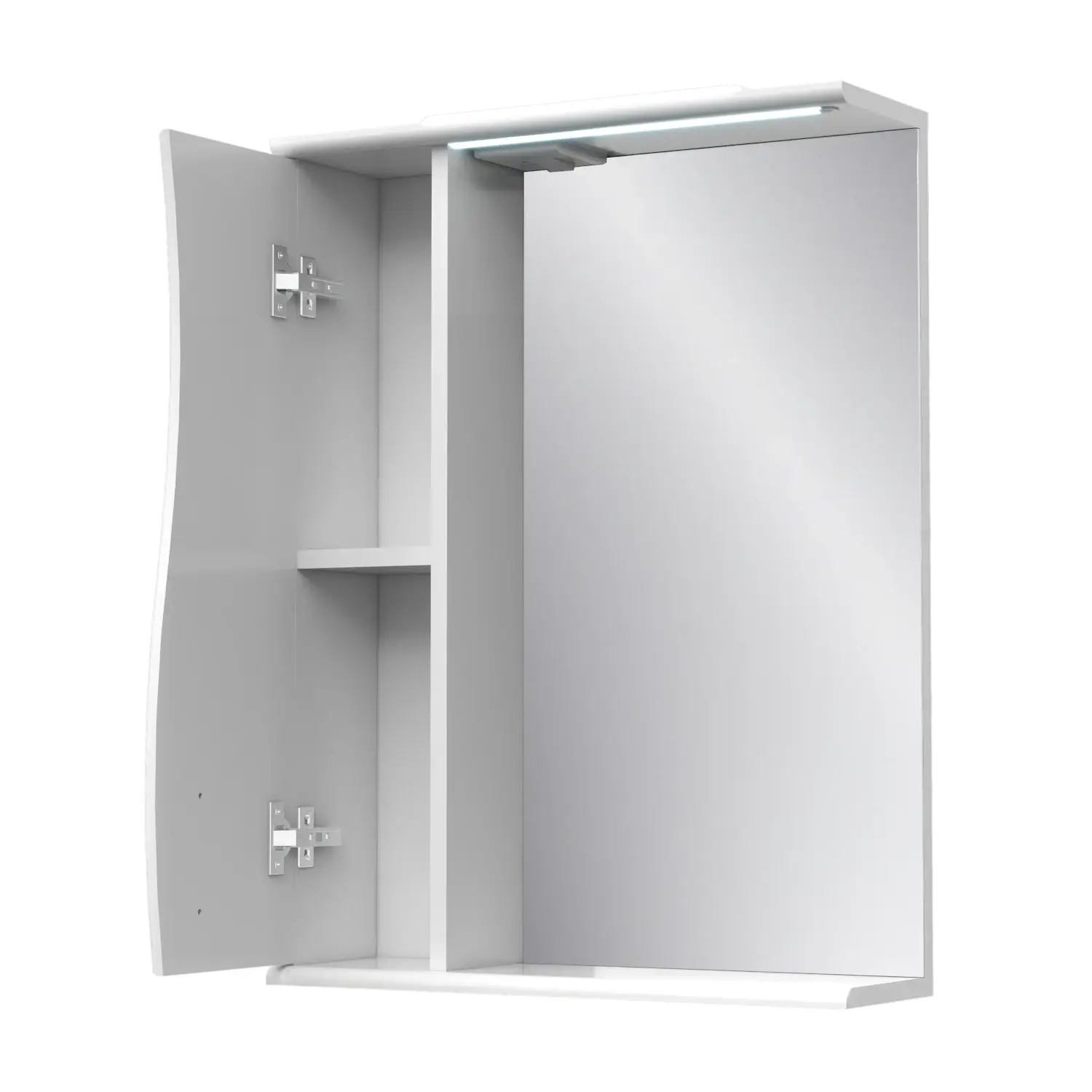 Зеркальный шкаф в ванную Van Mebles Волна 750×550 L с подсветкой, прямоугольный, белый