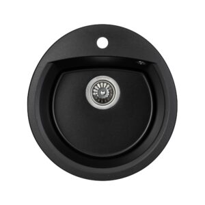 Гранитная мойка для кухни GRANADO Ronda 470×490 врезная, круглая, черная матовая