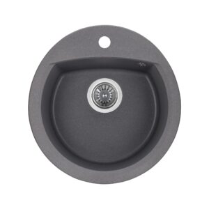 Гранитная мойка для кухни GRANADO Ronda 470×490 врезная, круглая, графитовая матовая