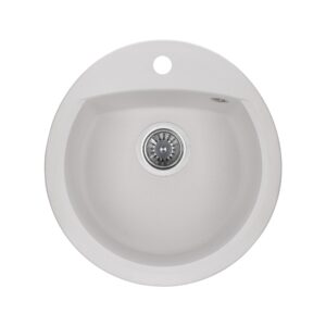 Гранитная мойка для кухни GRANADO Ronda 470×490 врезная, круглая, белая матовая