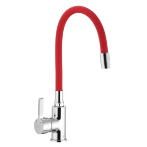 Кухонный смеситель Ibergrif M22112-1 с гибким изливом, хром/красный (IB0067)