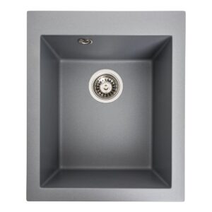 Гранитная кухонная мойка Valeso Ruba 400×400 врезная, квадратная, серый металлик (SP000046884)