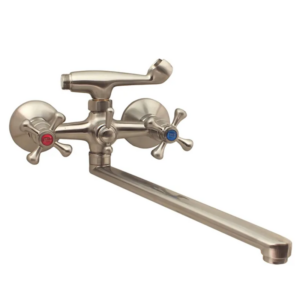 Это универсальный вариант, когда излив поворачивается в разные стороны. Может быть использован одновременно для ванны и умывальника.