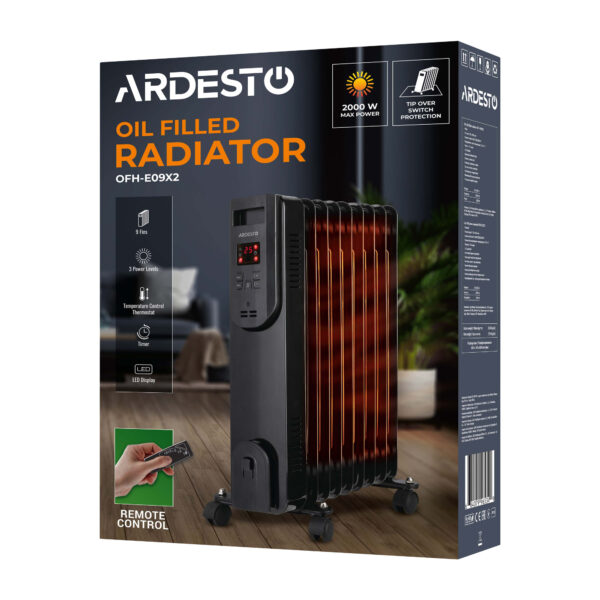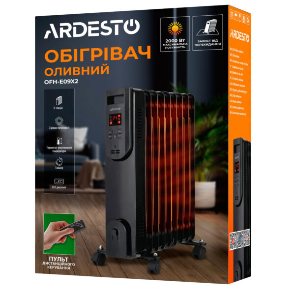 Масляний радіатор ARDESTO OFH-E09X2 2000 Вт електронний, чорний + пульт ДУ