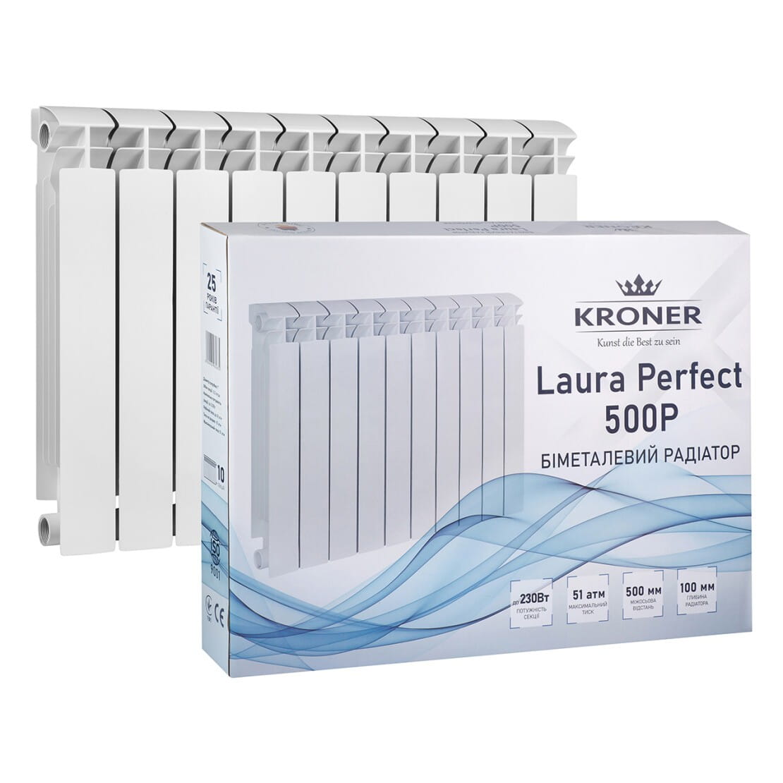 Біметалевий радіатор Kroner Laura Perfect 500P 500/100 бічне підключення, білий (10 секцій в зборі)
