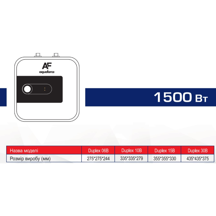 Бойлер Aquaforce – Duplex 30B 1,5 кВт, 30 л, під мийку, ТЕН мокрий, білий (Duplex 30B)