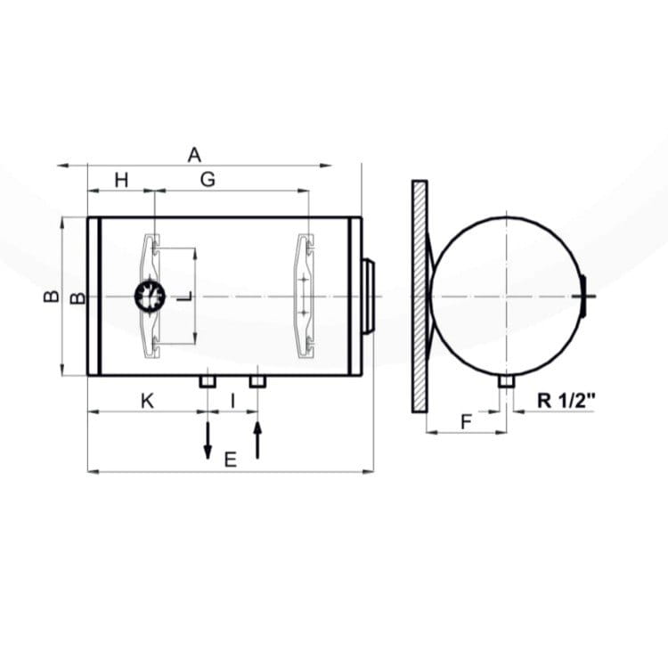 Бойлер Areesta Dry H50L 2 кВт 50 л сухий ТЕН, горизонтальний, білий