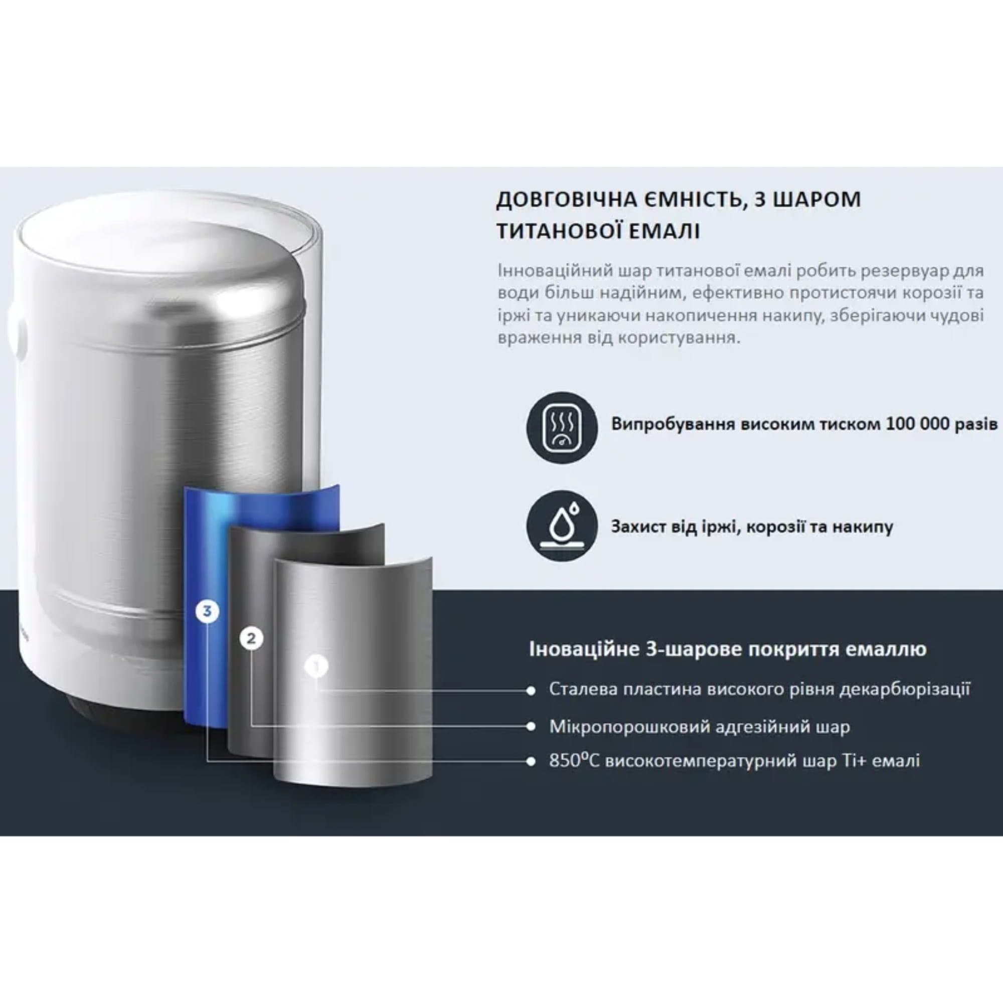 | Матеріал бака і покриття | Титанова емаль |