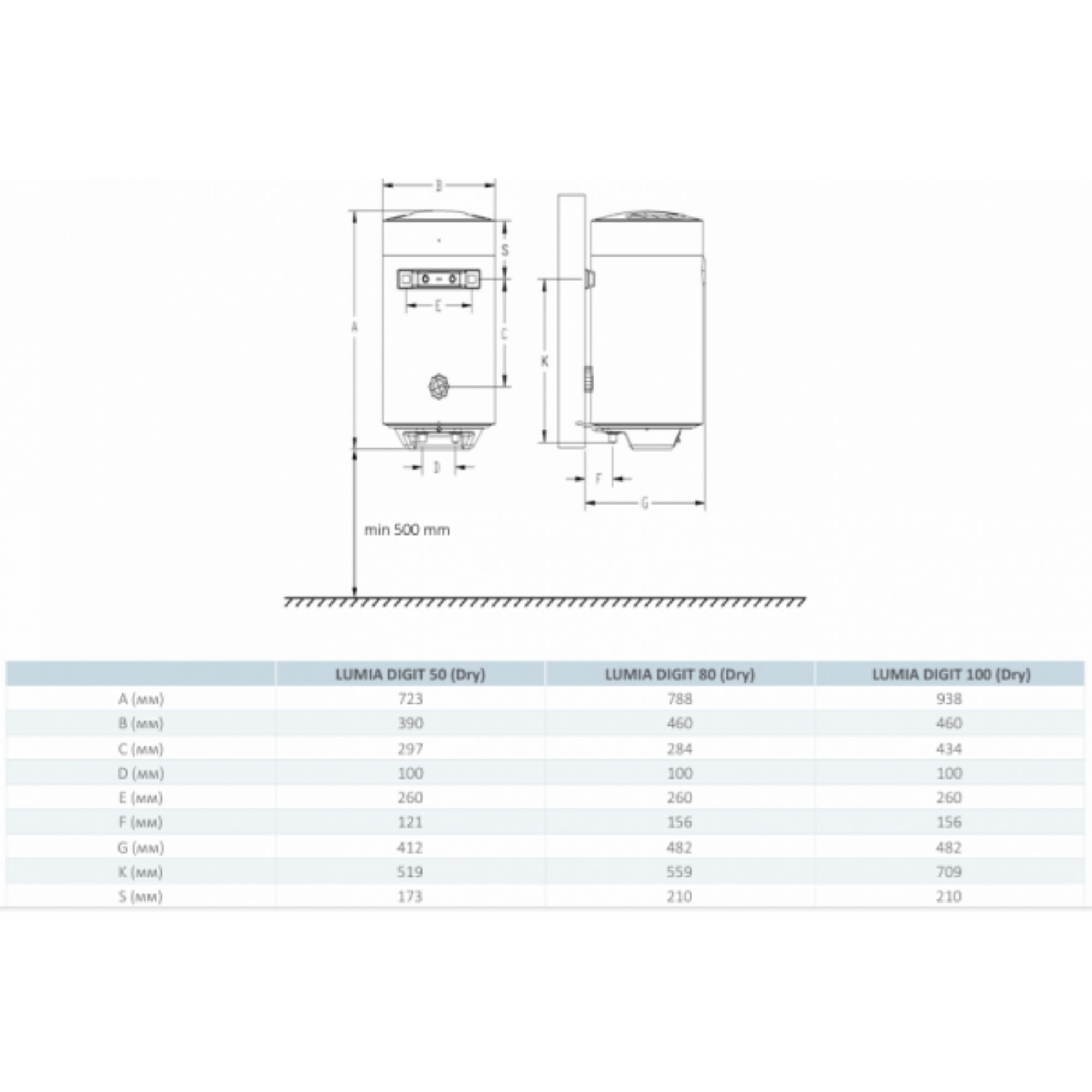 Бойлер Hi-Therm Lumia Digit 100 л 2 кВт сухий ТЕН, вертикальний, білий