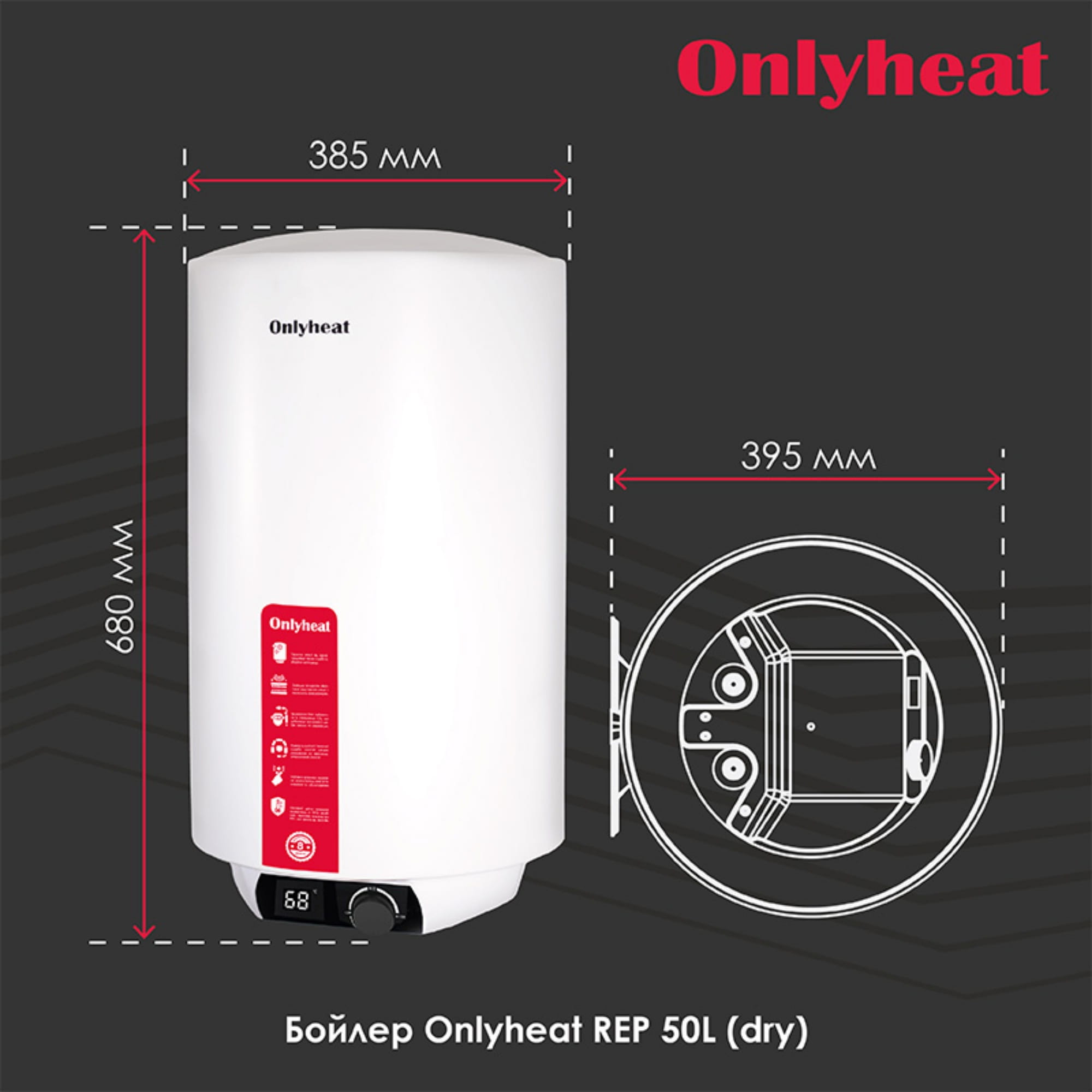 Бойлер Onlyheat REP50L(dry) 2 кВт 50 л сухий ТЕН, вертикальний, білий
