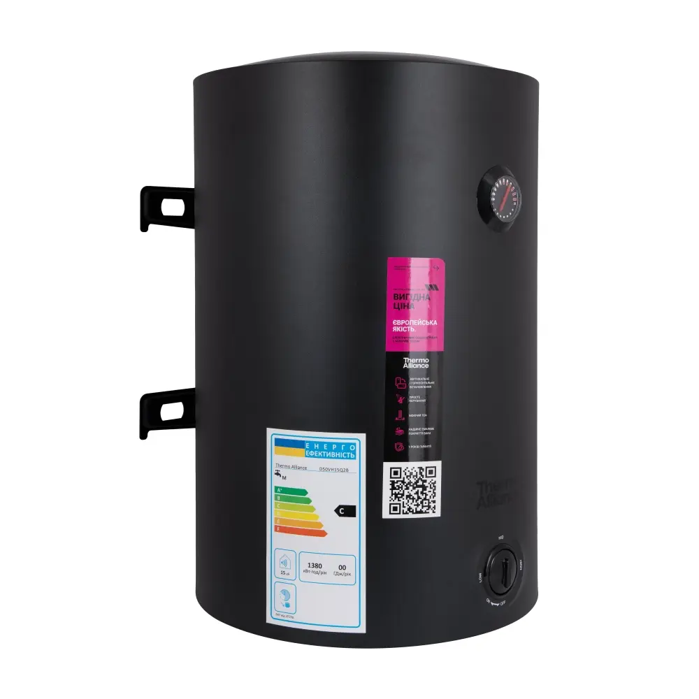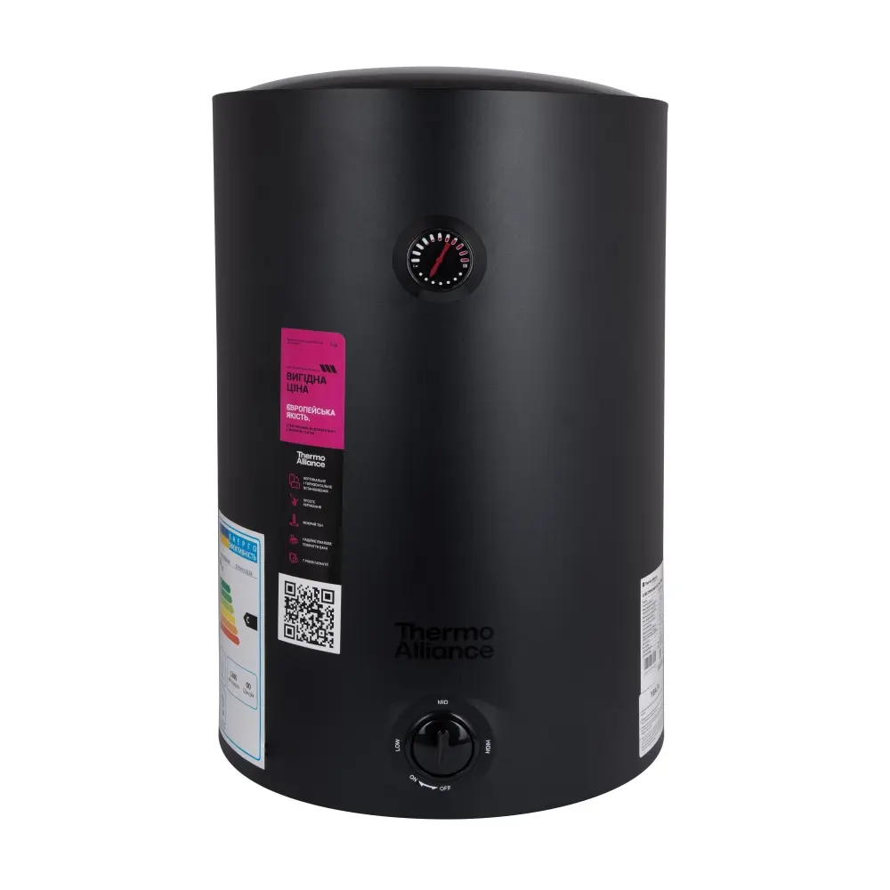 Бойлер Thermo Alliance D 1,5 кВт 100л, мокрий ТЕН вертикальний, чорний (D100VH15Q3В)