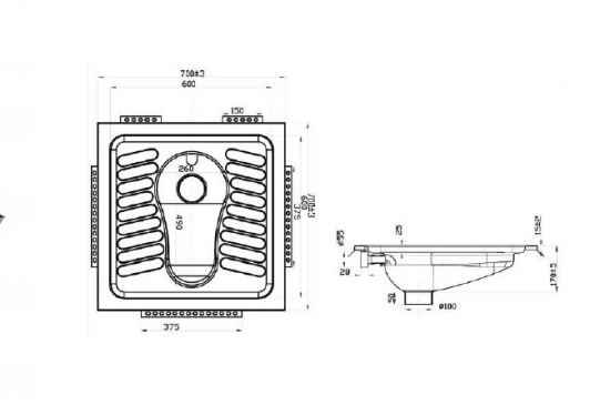Чаша Генуя Presto 700×700 нержавіюча сталь, з вертикальним випуском (71400)