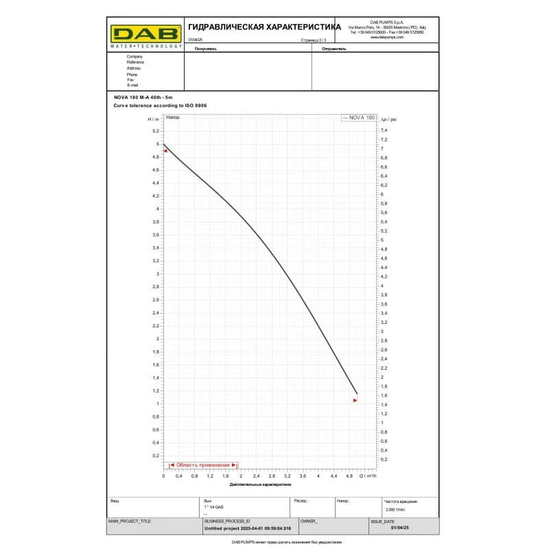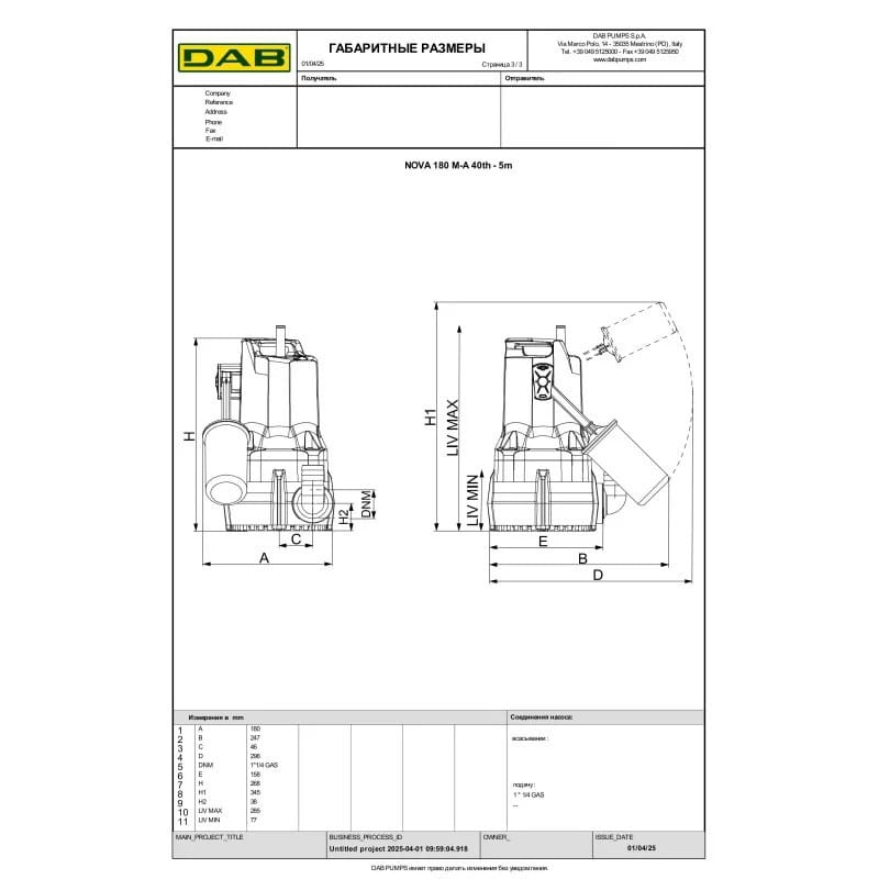 Дренажний насос DAB Nova 180 MA 40th 05H05 0,2 кВт H 5 м Q 83 л/хв з поплавком (601120073H)