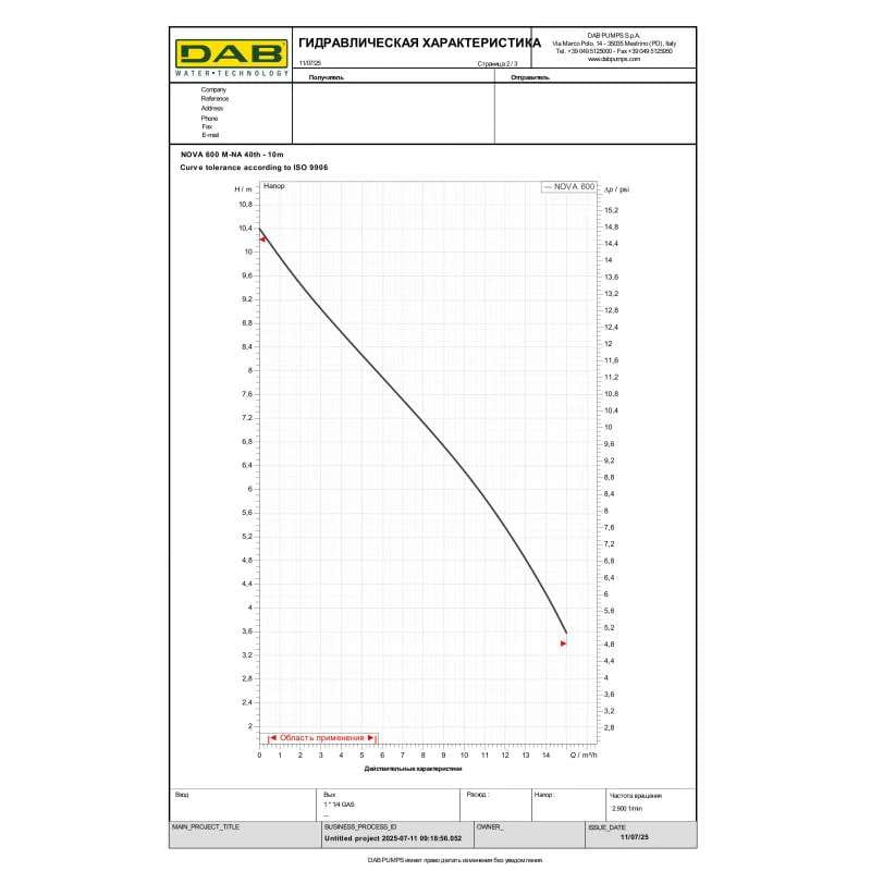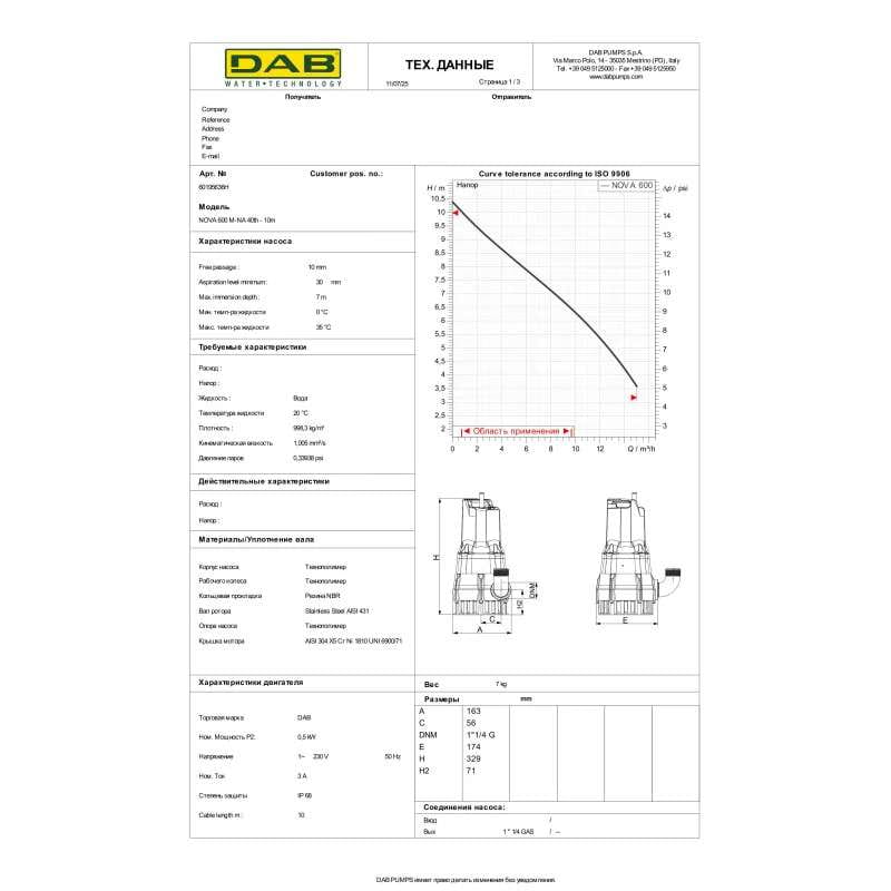 Дренажний насос DAB Nova 600 M-NA 40th 0,5 кВт H 10 м Q 250 л/хв (601120636H)
