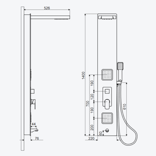 Довжина кронштейна для верхнього душу, мм | 526 |