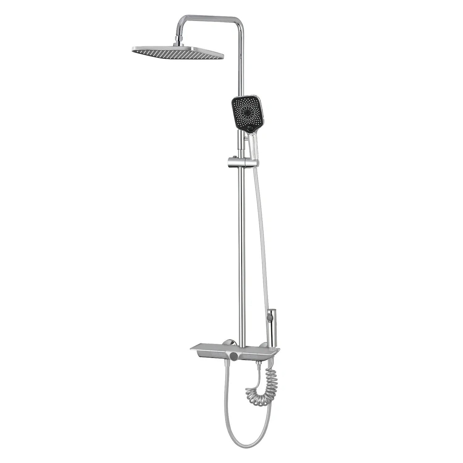 | Комплектація | Душова стійка, Душовий шланг, Змішувач, Кріплення, Кронштейн для верхнього душу, Лейка для верхнього душу, Лейка для ручного душу |