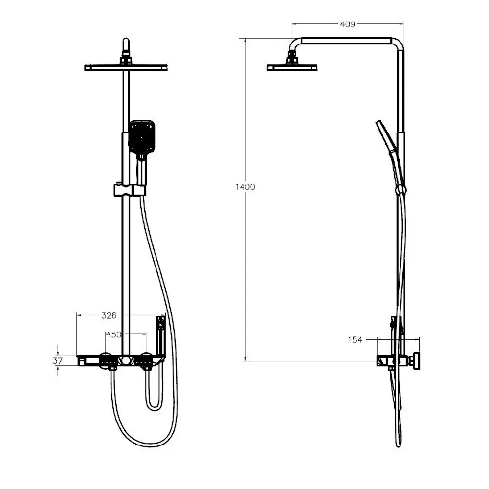 | Довжина кронштейна для верхнього душу, мм | 409 |