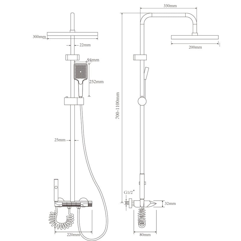 | Довжина кронштейна для верхнього душу, мм | 330 |