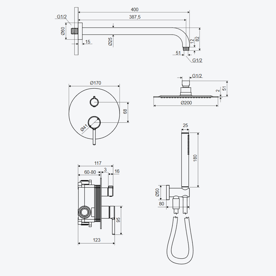 Довжина кронштейна для верхнього душу, мм | 387,5 |