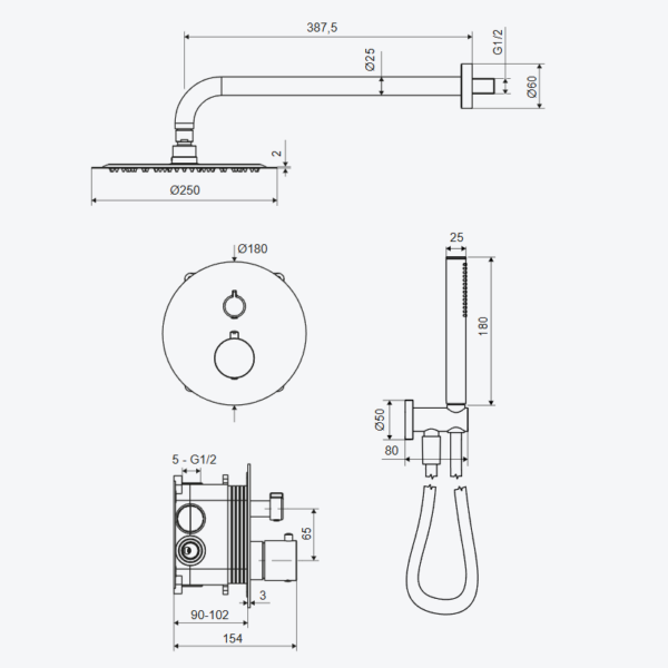 Довжина кронштейна для верхнього душу, мм | 387,5 |