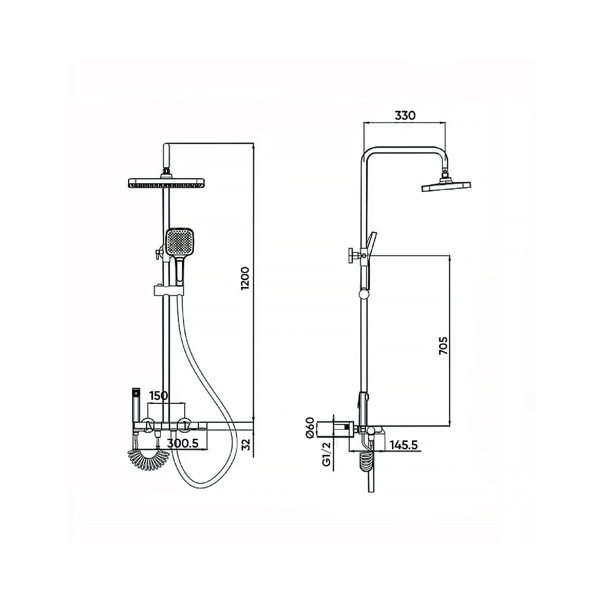 | Довжина кронштейна для верхнього душу, мм | 330 |