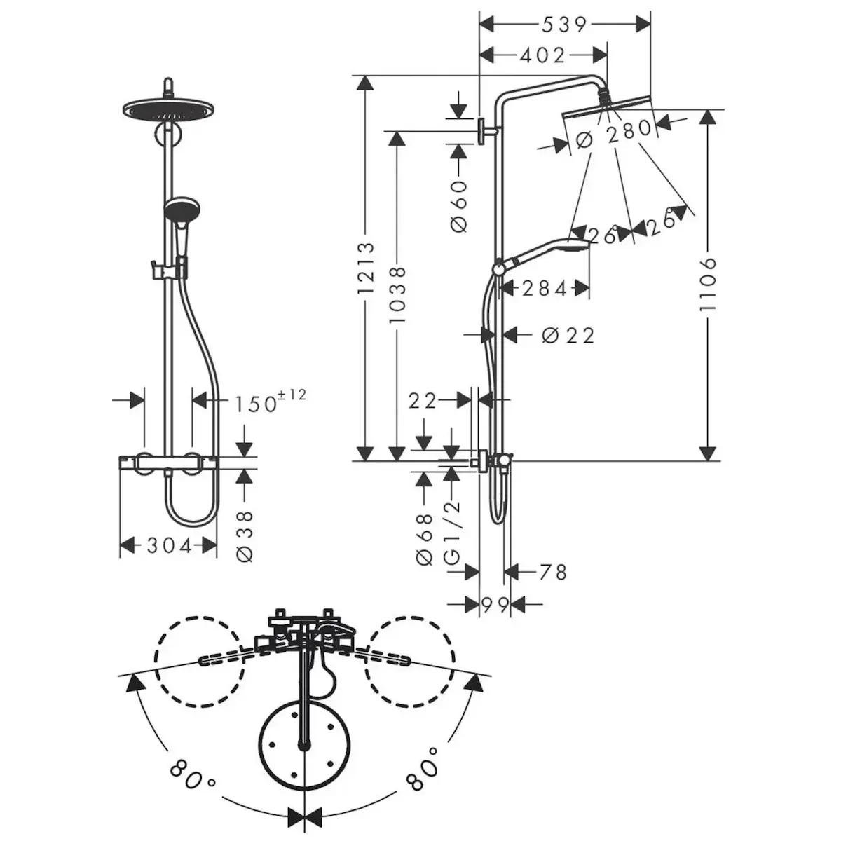 | Фірмові технології | EcoSmart – продукція на 60% менше витрачає воду без втрати комфорту, QuickClean+ – запобігає утворенню накипу, Select-інтуїтивне перемикання струменя, XXL Performance – великий душ з різними типами струменів, Технологія AirPower дозволяє змішувати воду з повітрям |