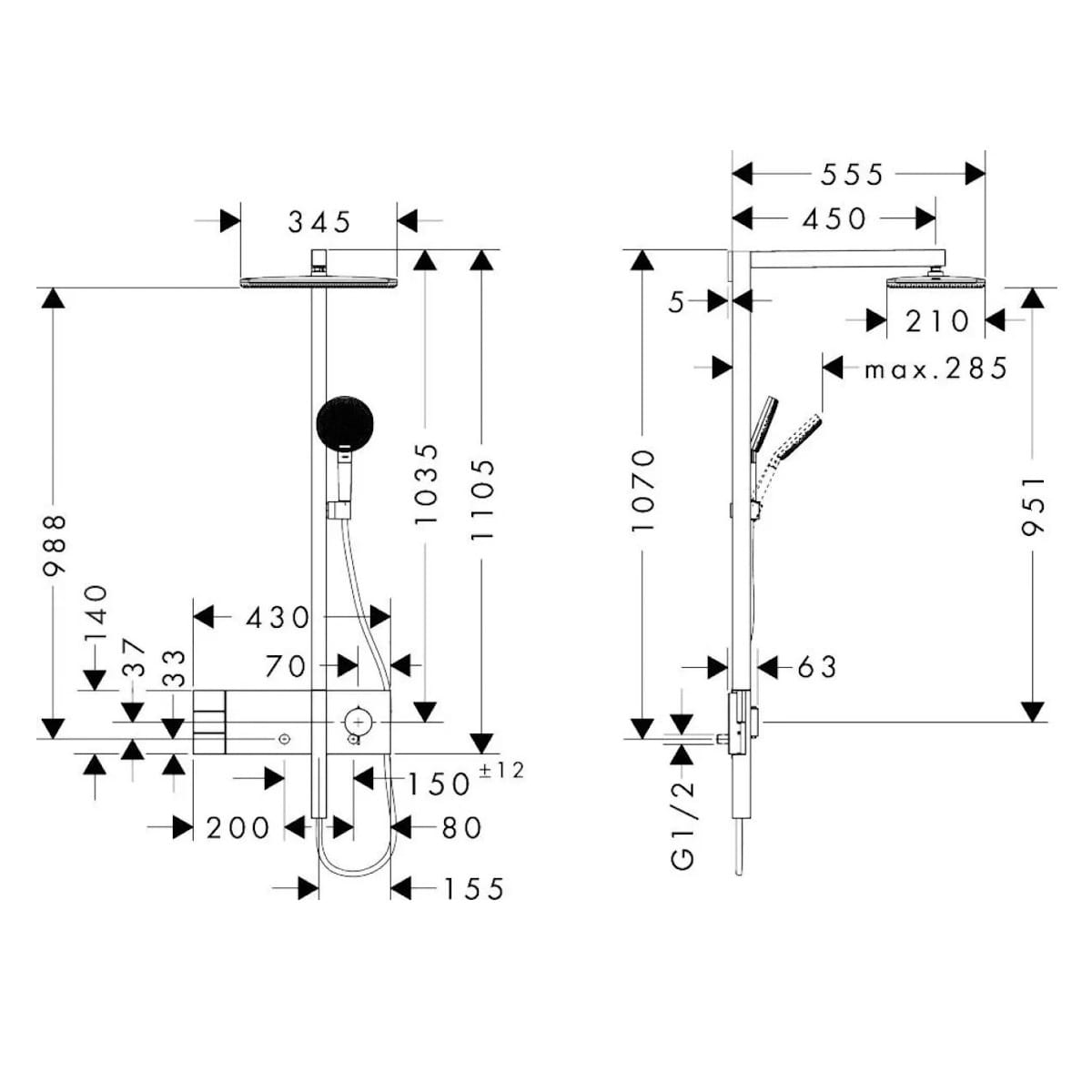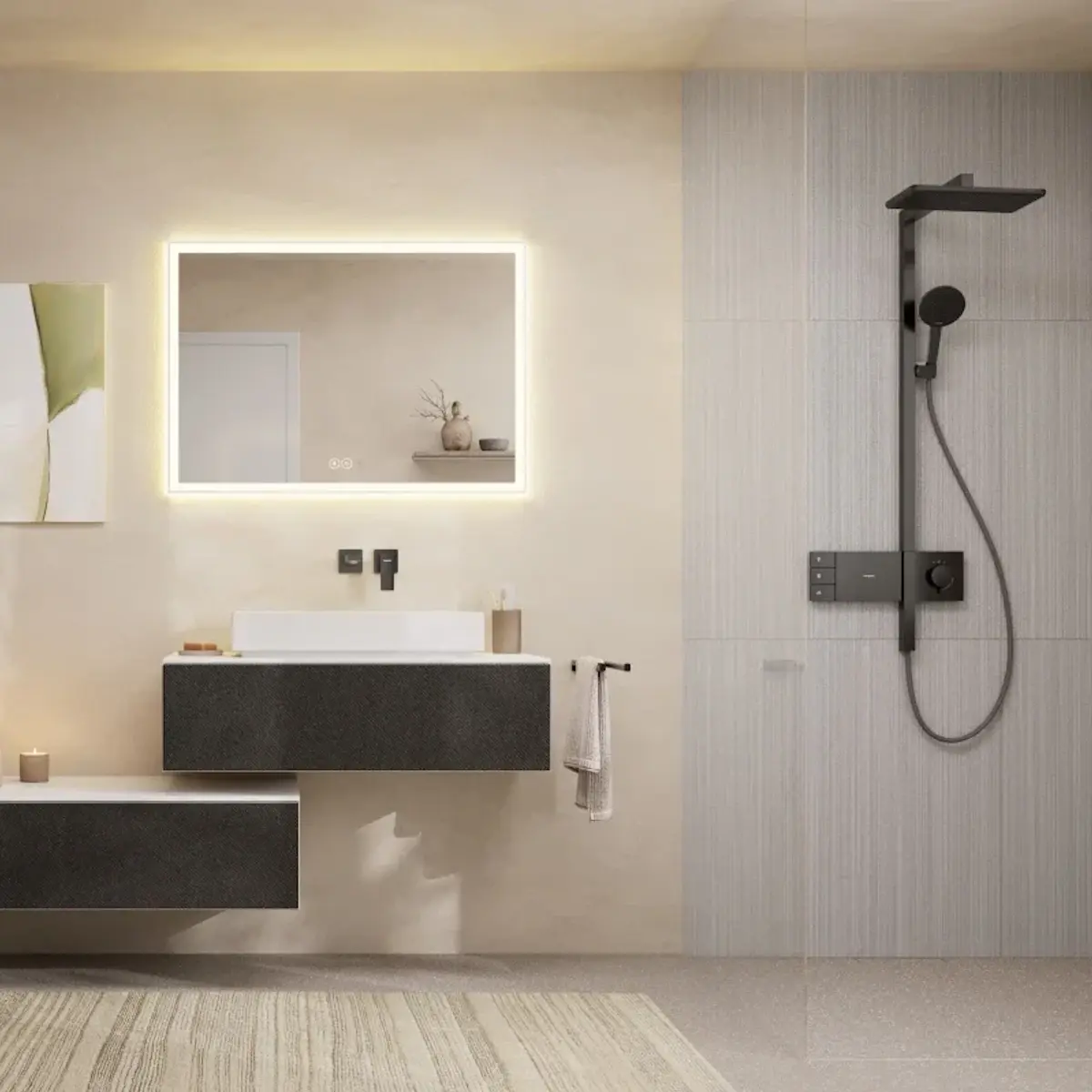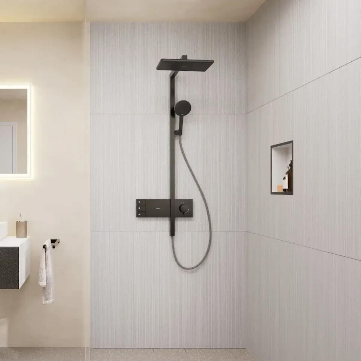 Душова система Hansgrohe Raindance Alive Q 340/210 2jet ShowerSelect Comfort з термостатом, метал, чорний матовий (24590670)