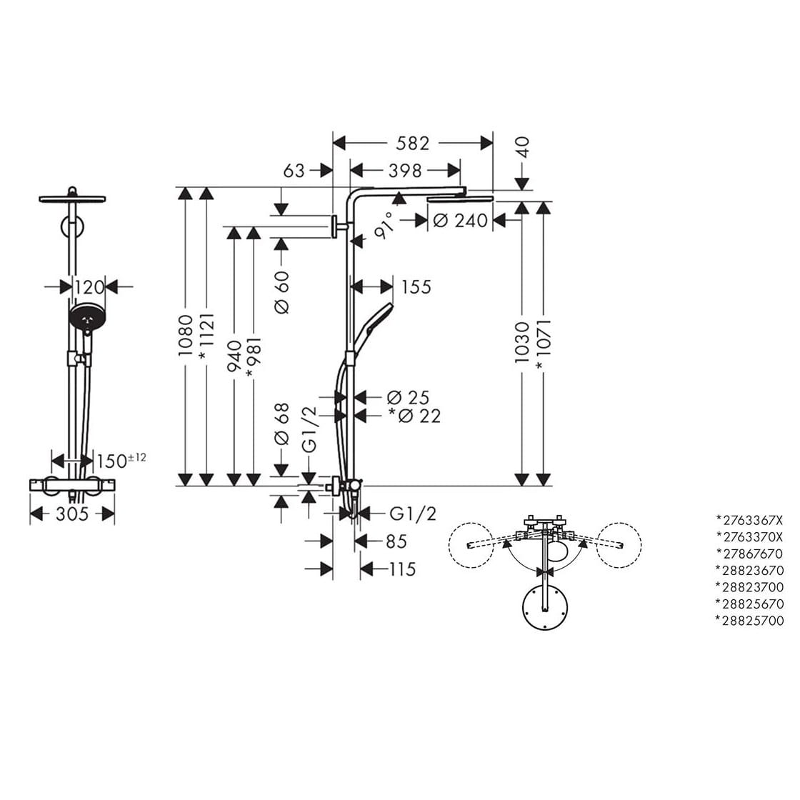 | Фірмові технології | EcoSmart – насадка для душу використовує на 40% менше води, ніж звичайні душі, QuickClean – менше вапняного нальоту, Select-інтуїтивне перемикання струменя, XXL Performance – великий душ з різними типами струменів, Термостат – завжди постійна температура води |
