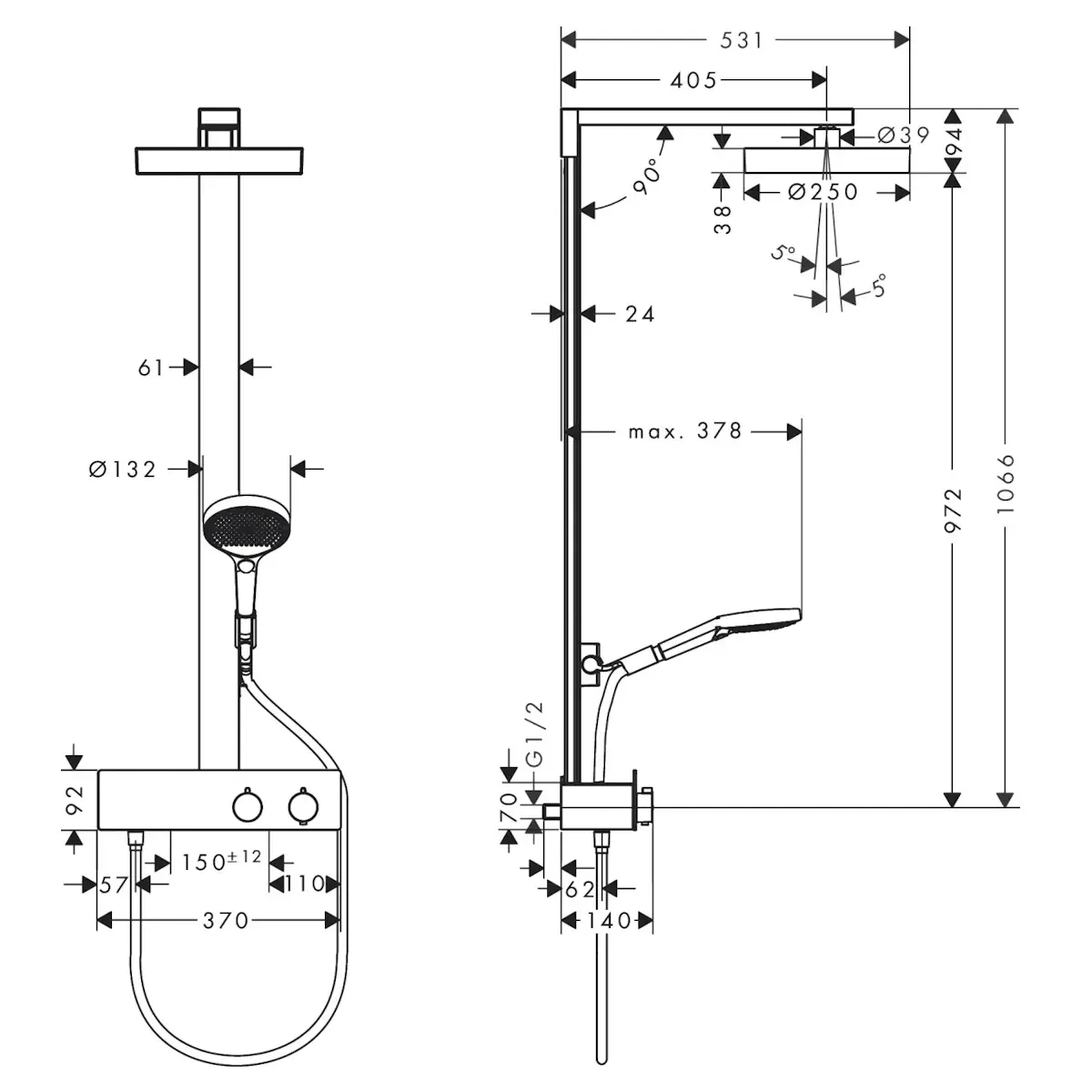 | Диаметр верхнего душа | 250 мм |