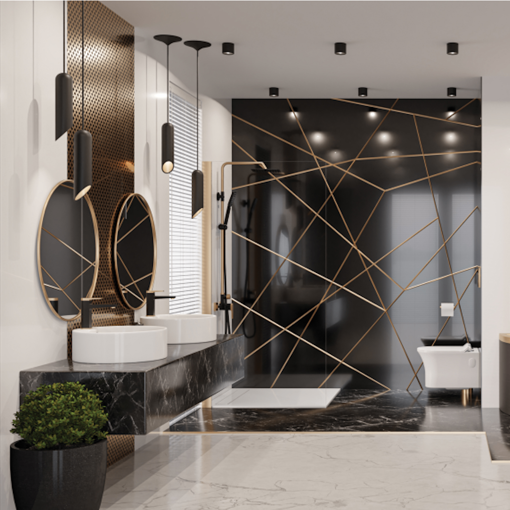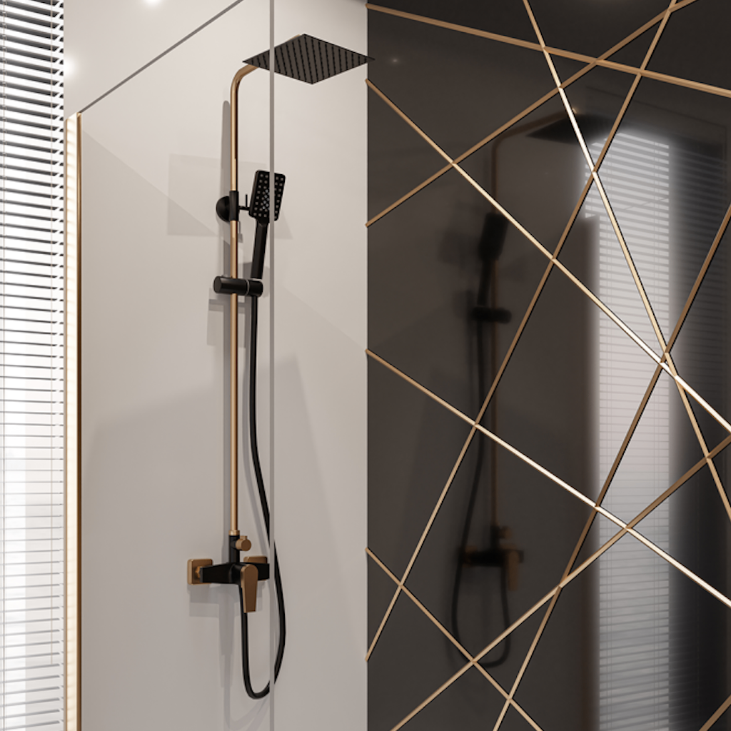 Душова система Invena Midnight з регулюванням висоти, нержавіюча сталь, чорний/золотий (AU-35-D14)
