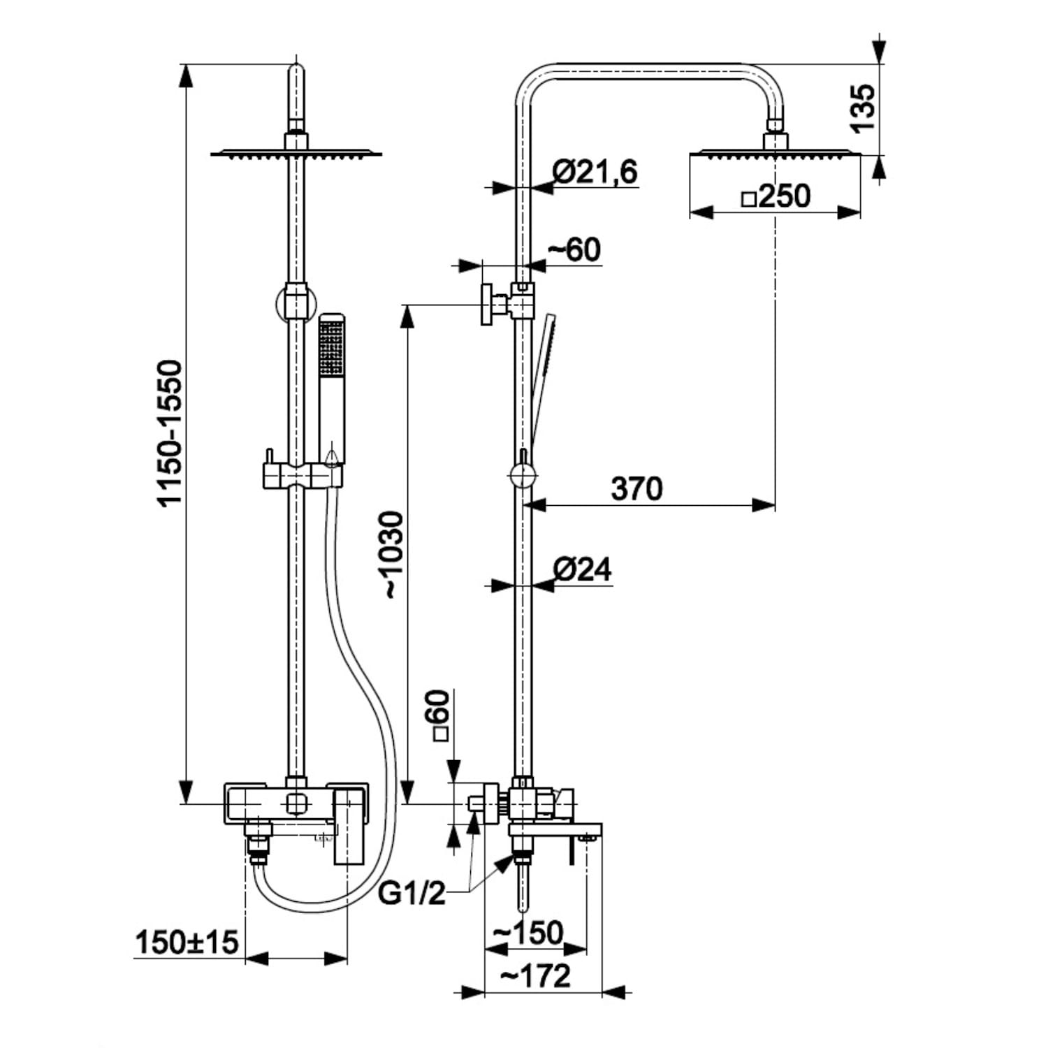 | Довжина кронштейна для верхнього душу, мм | 370 |