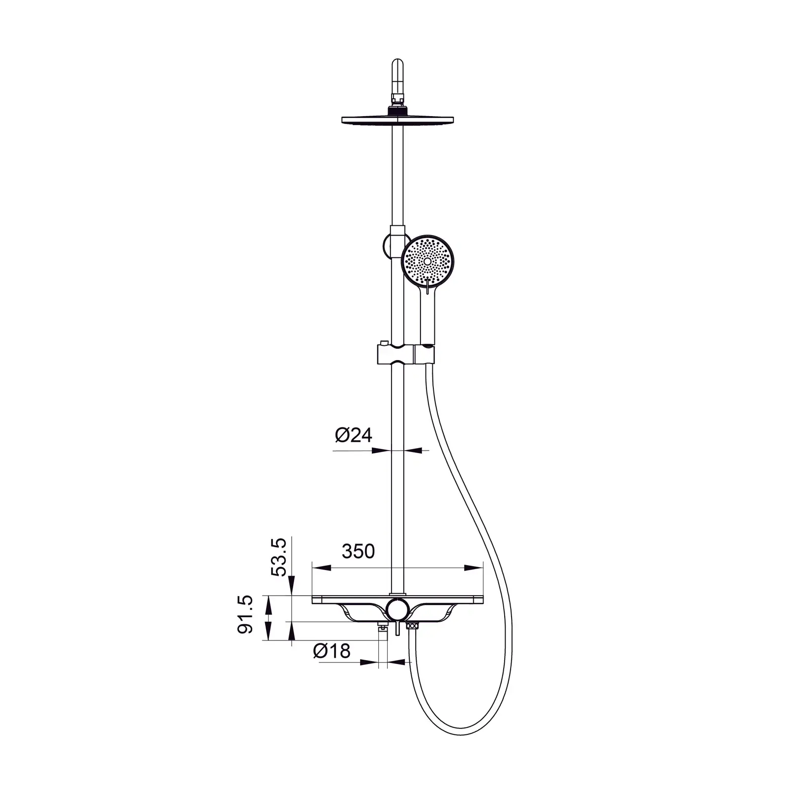 | Комплектація | Верхній душ, Душова стійка, Душовий шланг, Змішувач прихованого монтажу, Кронштейн для верхнього душу, Лейка для ручного душу |