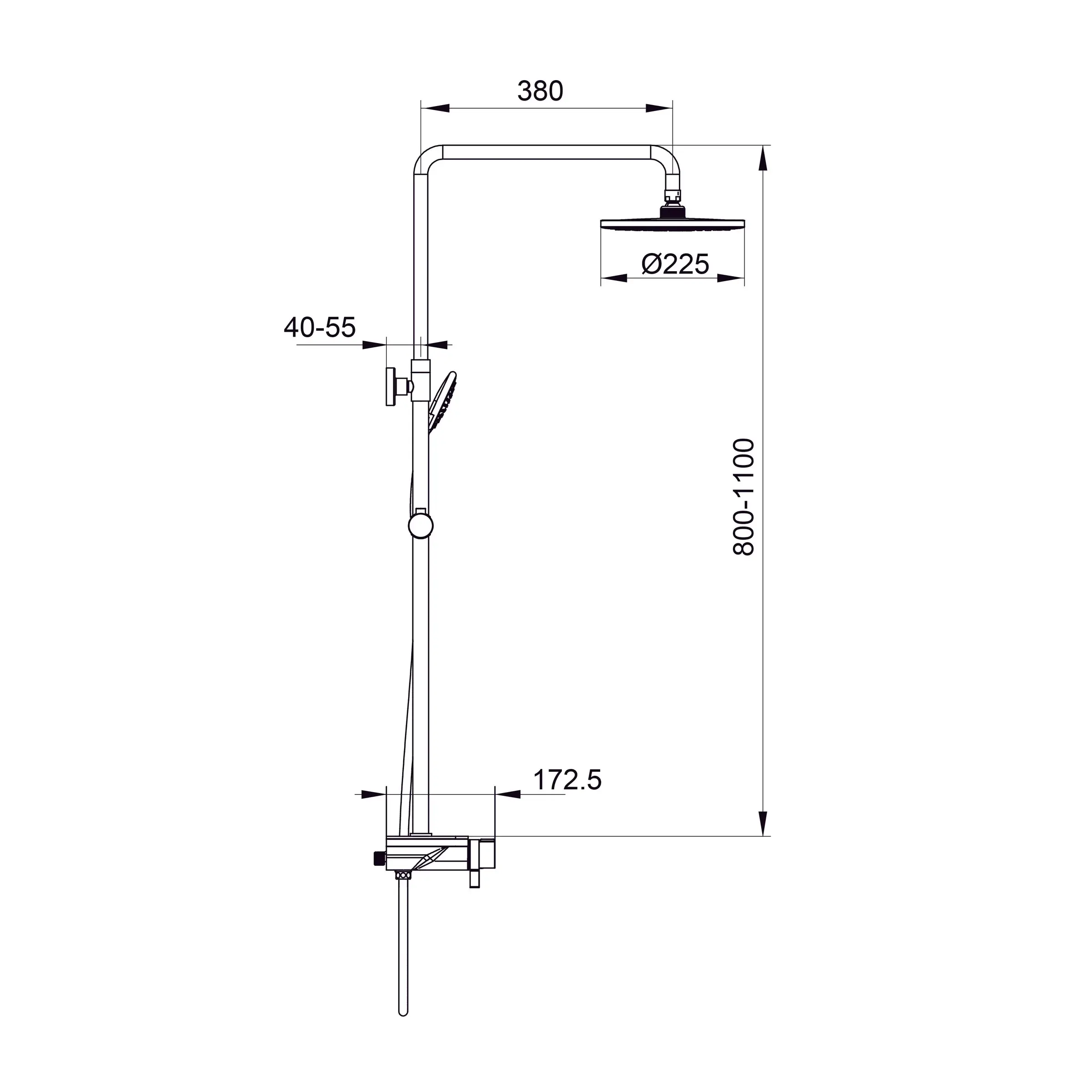 | Диаметр верхнего душа | 225 мм |