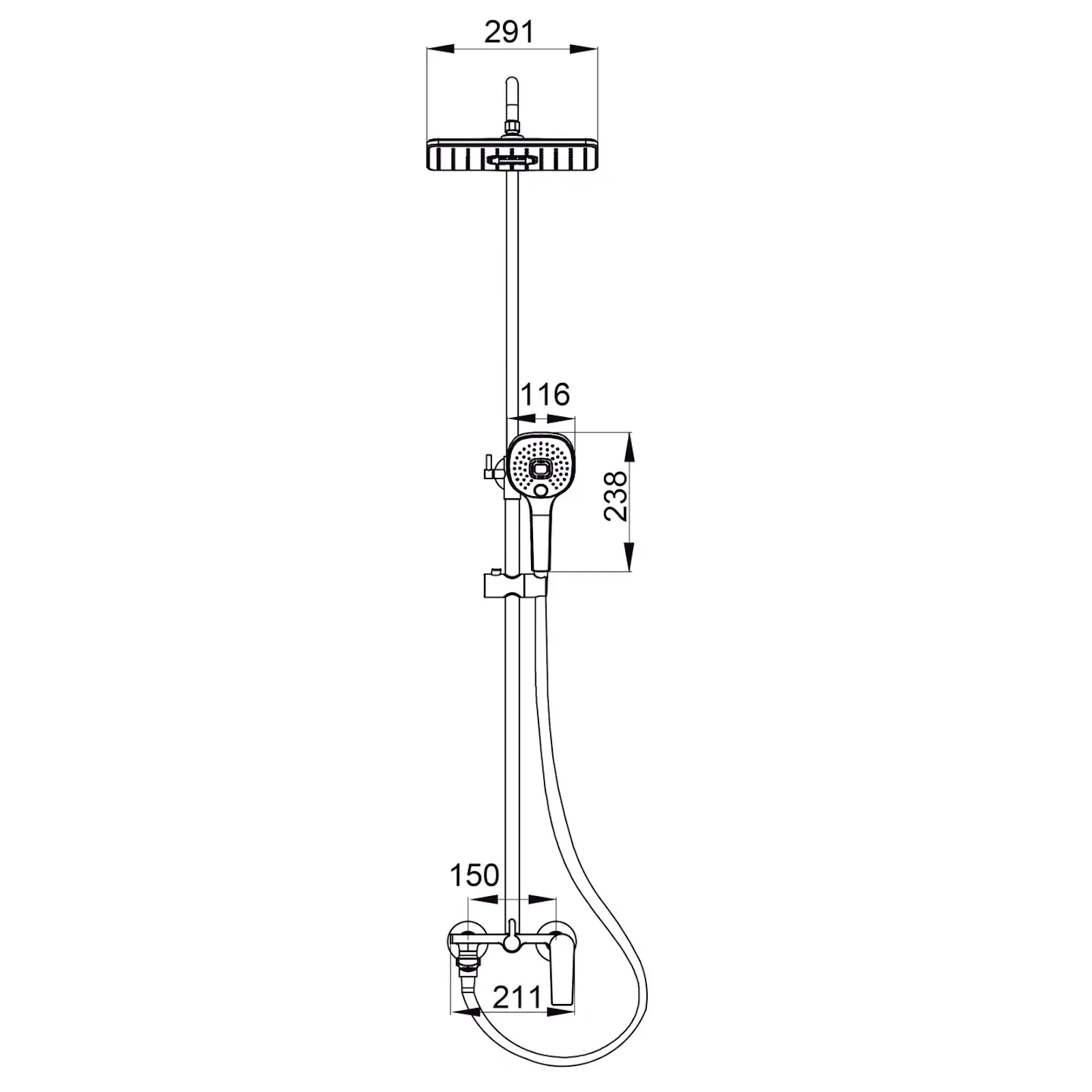 | Комплектація | Верхній душ, Душова стійка, Душовий шланг, Змішувач прихованого монтажу, Кронштейн для верхнього душу, Лейка для ручного душу |