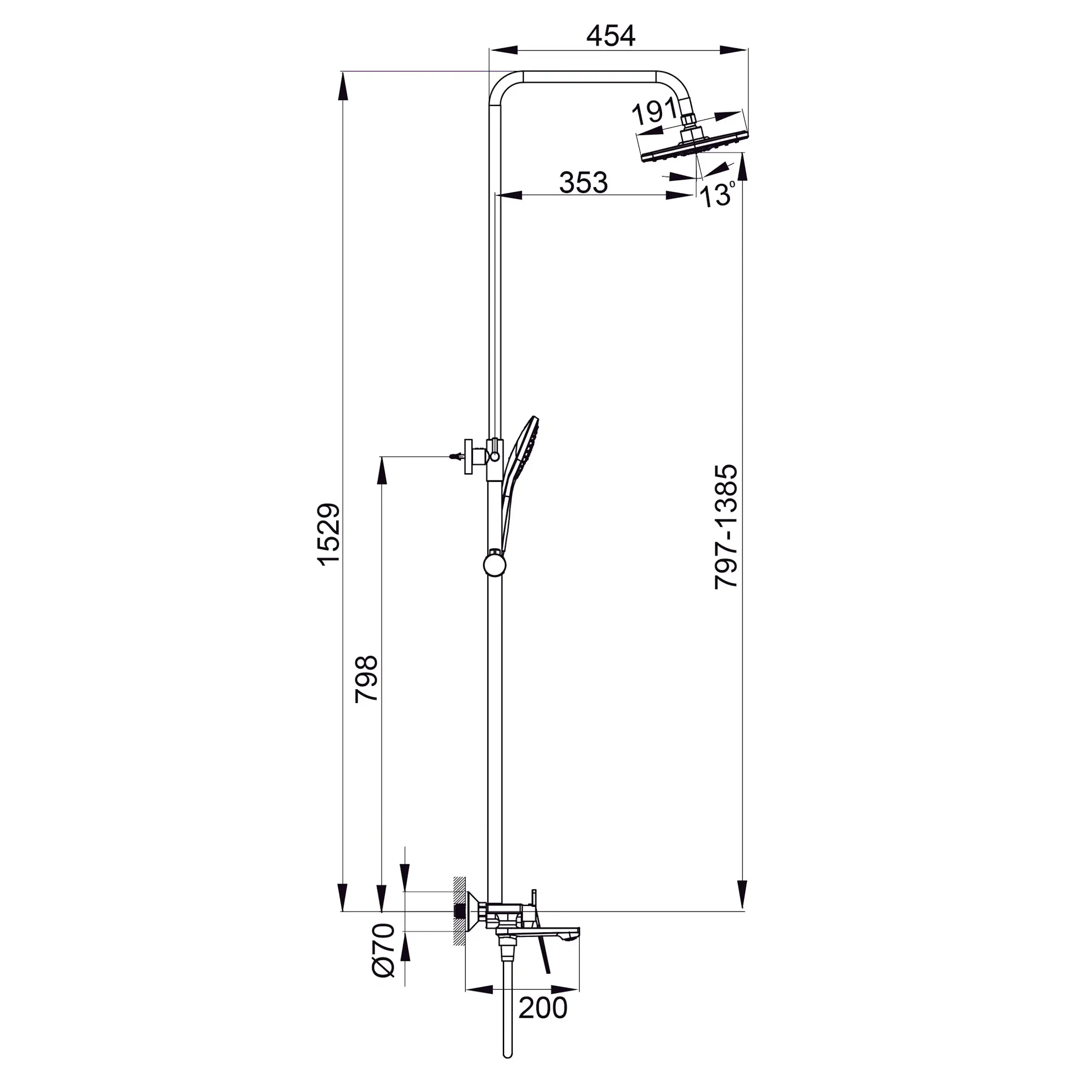 | Довжина кронштейна для верхнього душу, мм | 454 |